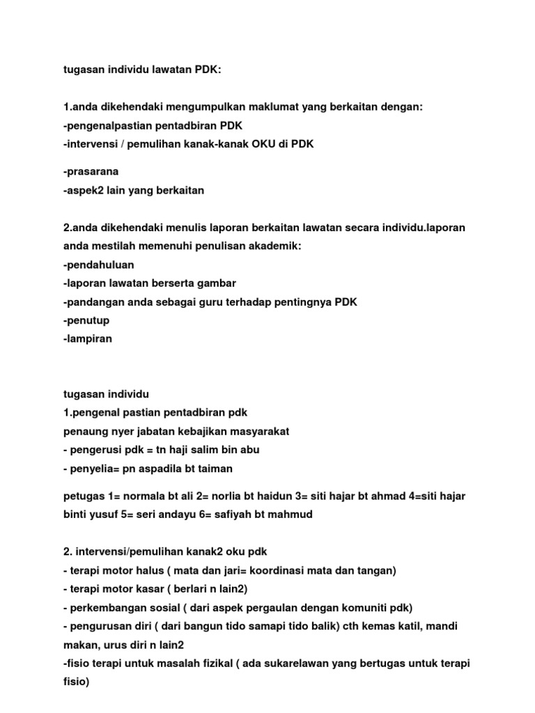 Tugasan Individu Lawatan Pdk Pdf