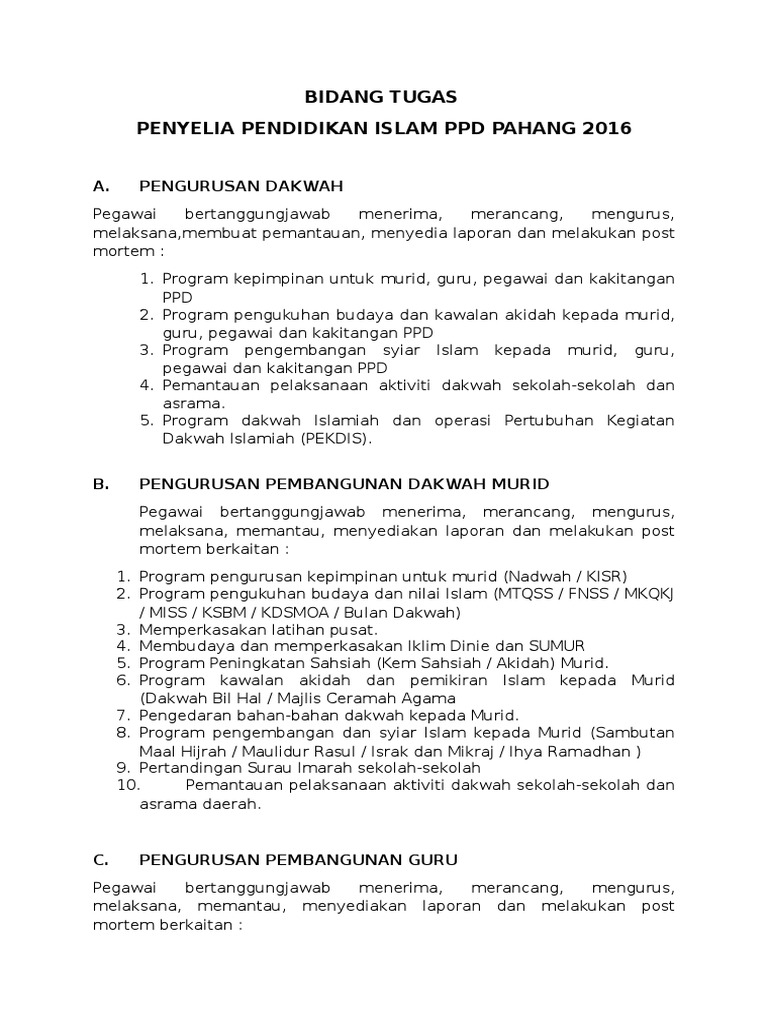 Bidang Tugas Penyelia Pendidikan Islam Pdf